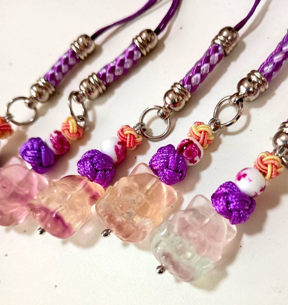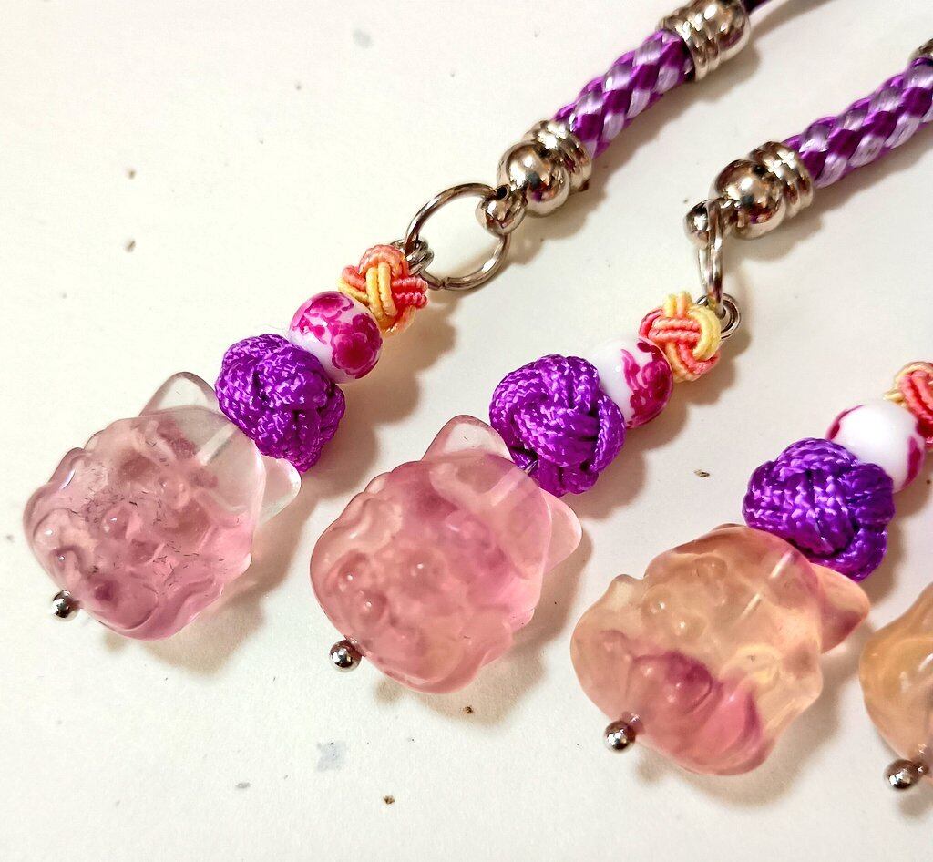 紫系のフローライト(蛍石)でできた九尾の狐を、根付にしました。天然石ですので、色が濃い子、薄い子ありますが、基本的にランダムとなりますのでご了承下さい。