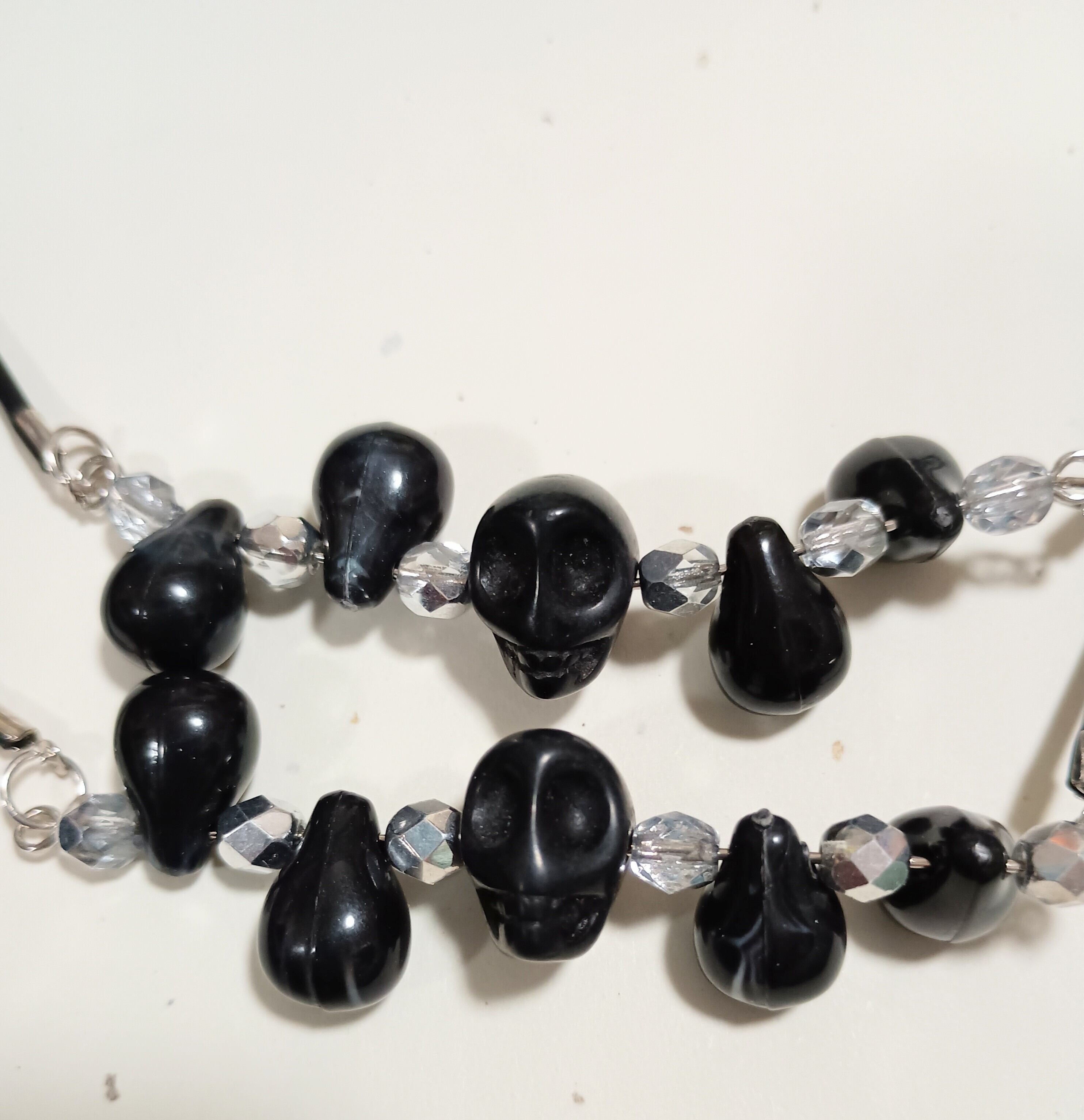 ドクロビーズの革ひもネックレスA