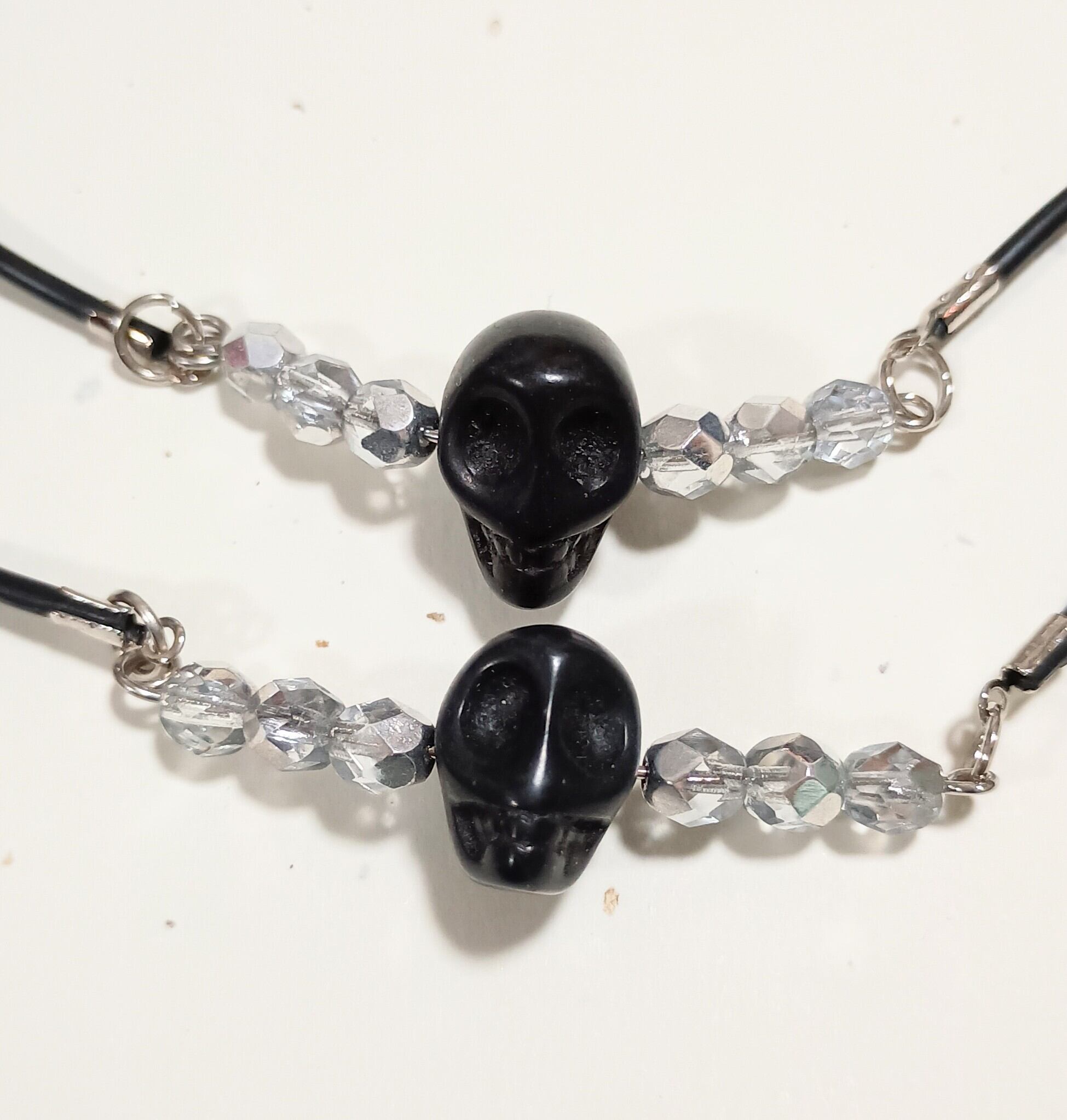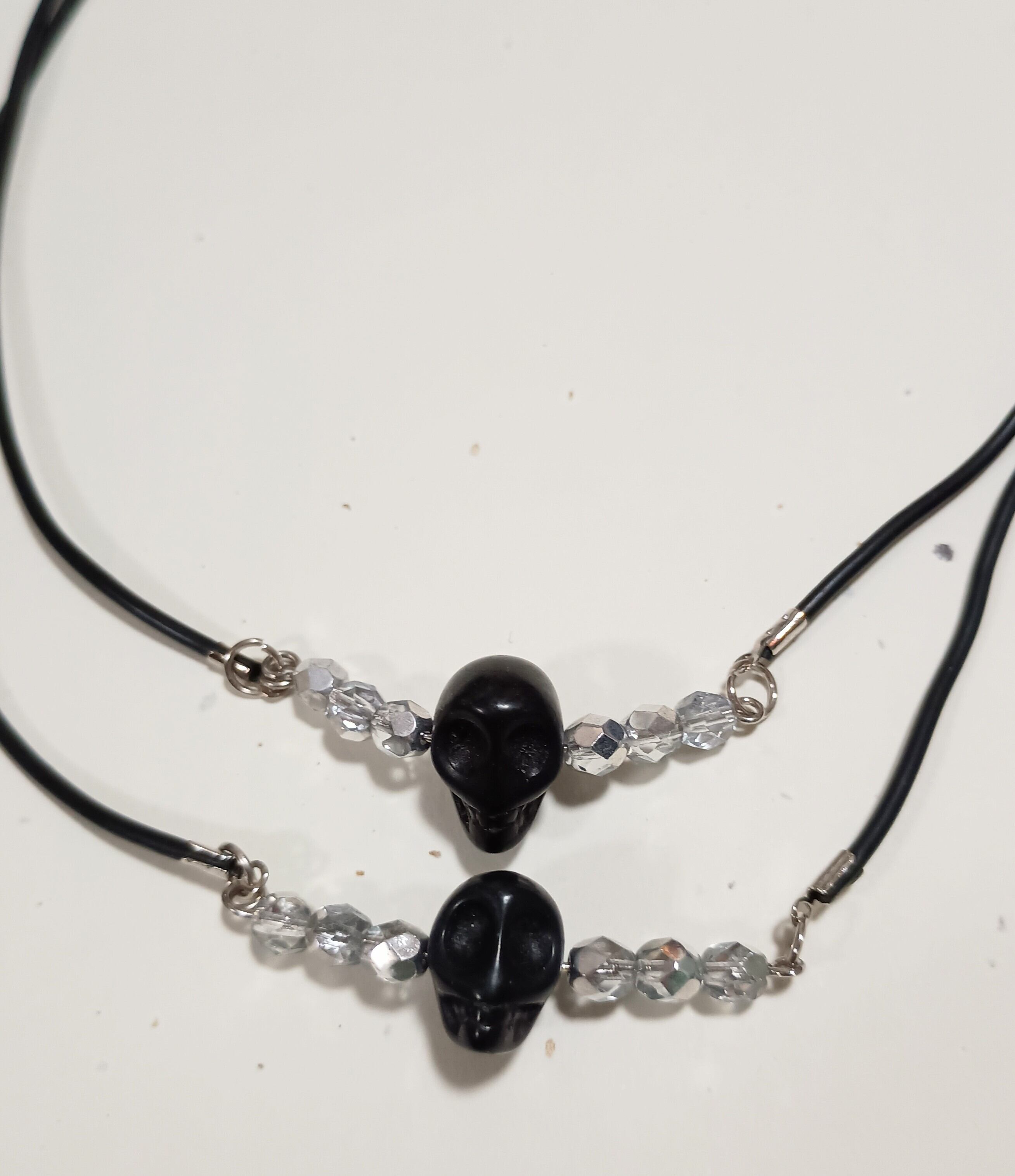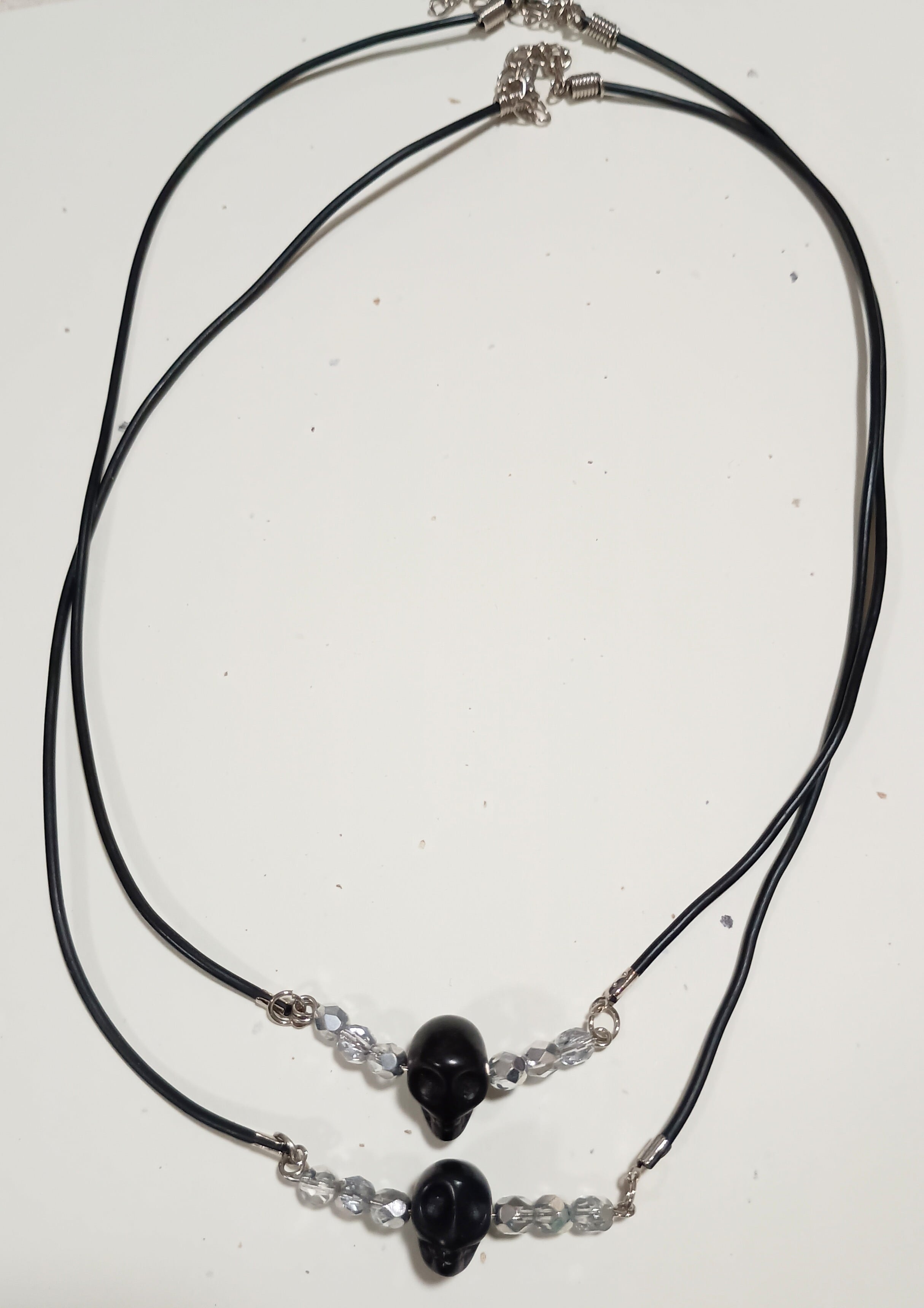 真ん中にドクロのビーズをあしらった、革ひもネックレスです。